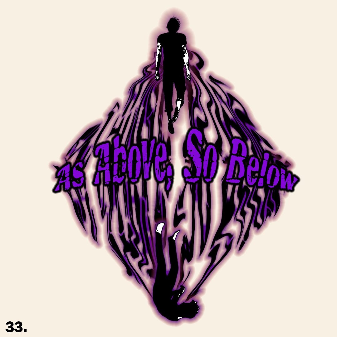 This artwork visually depicts the concept of mysticism using typography. The phrase "As Above, So Below" in the center of the artwork is derived from Hermeticism and suggests that events on Earth or in the material world are reflective of the spiritual world, including heaven and hell. This concept aligns with the theme of mysticism, which involves the study and practice of self-reflection as a means to achieve closeness to God. The opposing figures in the artwork represent the contrasting aspects of ascension and damnation encountered during a spiritual journey.